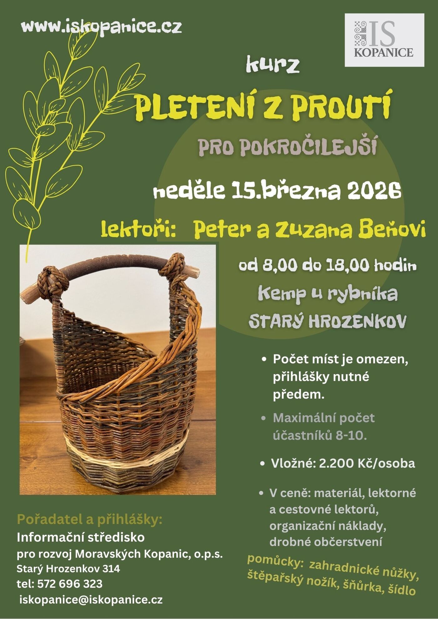 Pro velký zájem pokračujeme v pořádání košíkářských kurzů s manželi Běňovými ze Slovenska i v roce 2026.