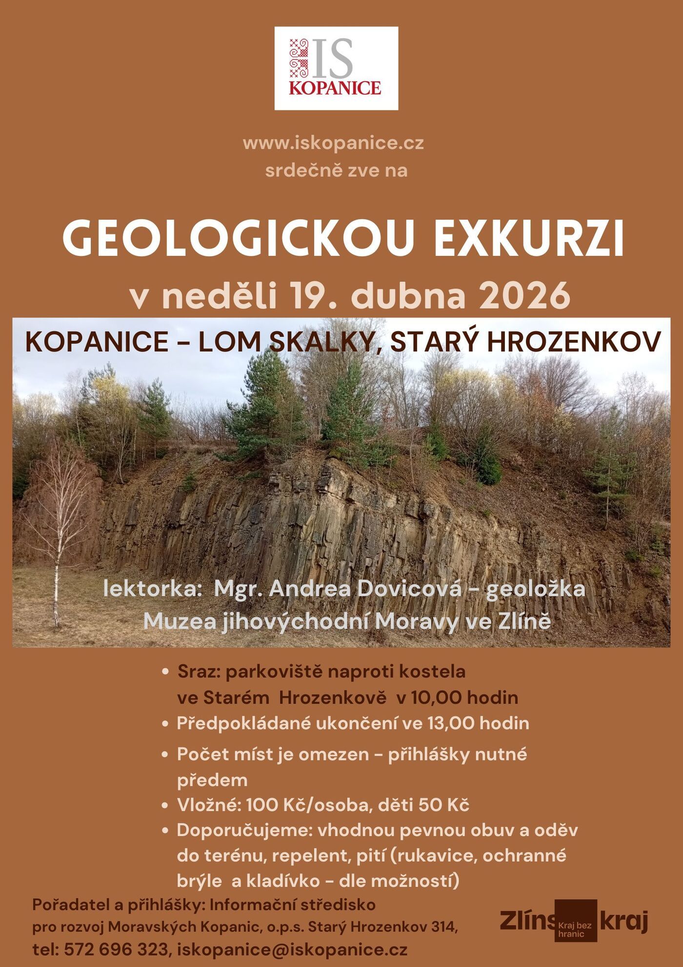 Srcdečně zveme všechny zájemce na další geologickou exkurzi s geoložkou Muzea jihovýchodní Moravy ve Zlíně, paní Andreou Dovicovou.